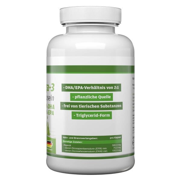Trong loại dầu tảo này, tỷ lệ của các axit béo thiết yếu (quan trọng) EPA (axit eicosapentaenoic) và DHA (axit docosahexaenoic) là 15 (EPA) đến 30 (DHA). Điều tuyệt vời của những viên nang axit béo này là chúng có thể được cơ thể hấp thụ đặc biệt dễ dàng do ở dạng chất béo trung tính (dạng TG)!